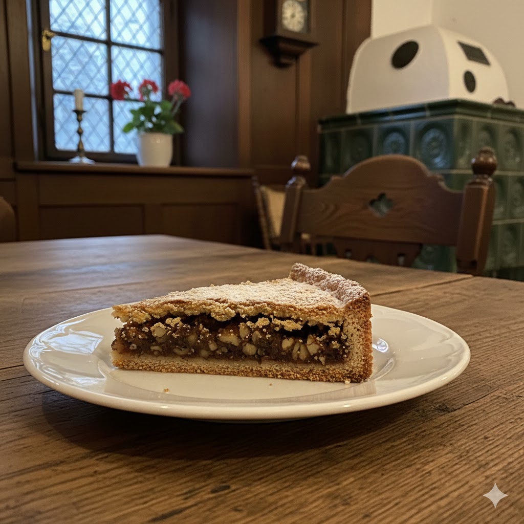 A Bündner Nusstorte é uma sobremesa famosa do cantão de Graubünden. Ela é intensa, doce na medida e muito valorizada como presente.